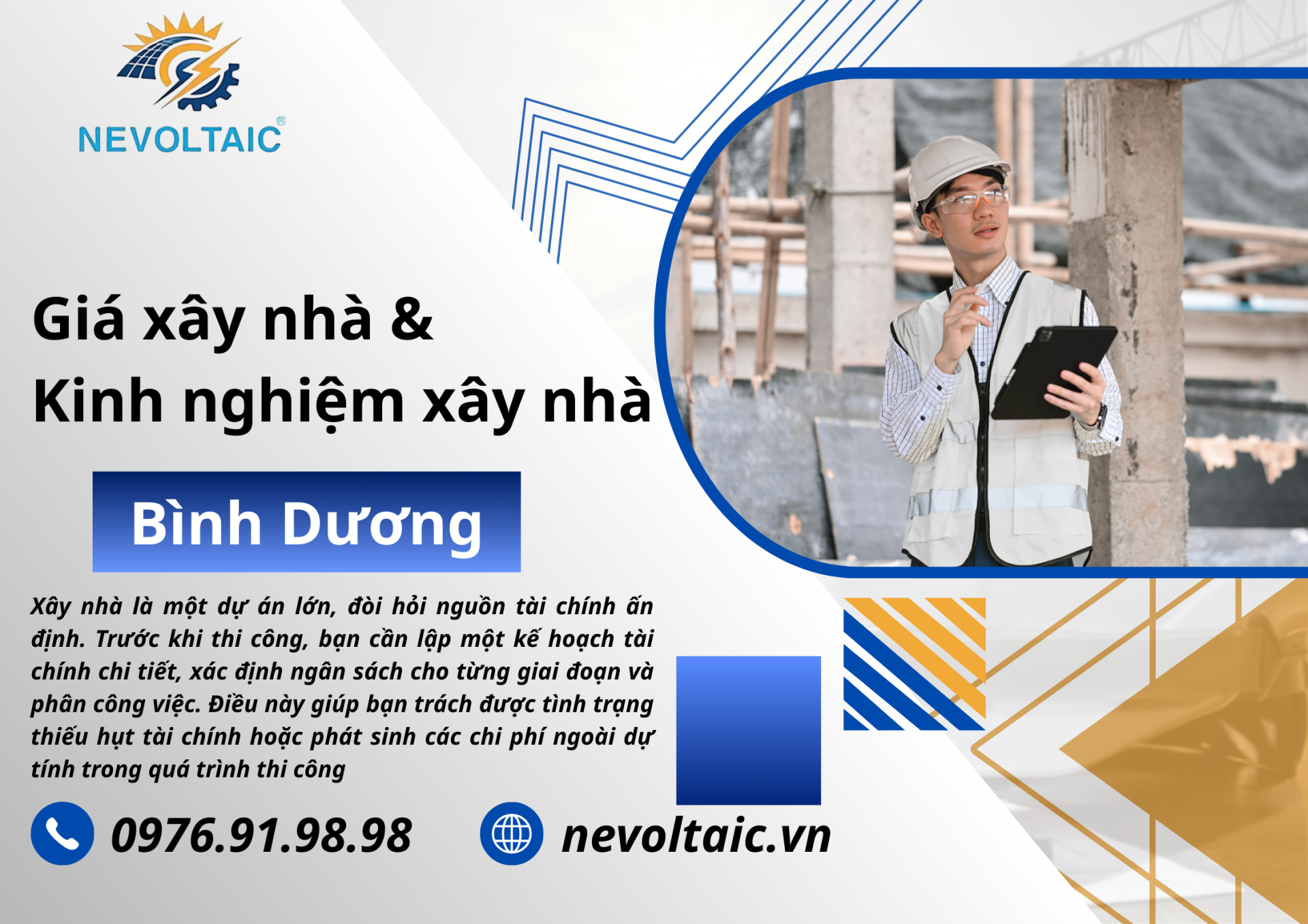 Bạn đang có kế hoạch xây nhà tại Bình Dương? Hãy liên hệ ngay với Xây Lắp NEVOLTAIC để nhận tư vấn chi tiết và báo giá miễn phí và chính xác nhất!